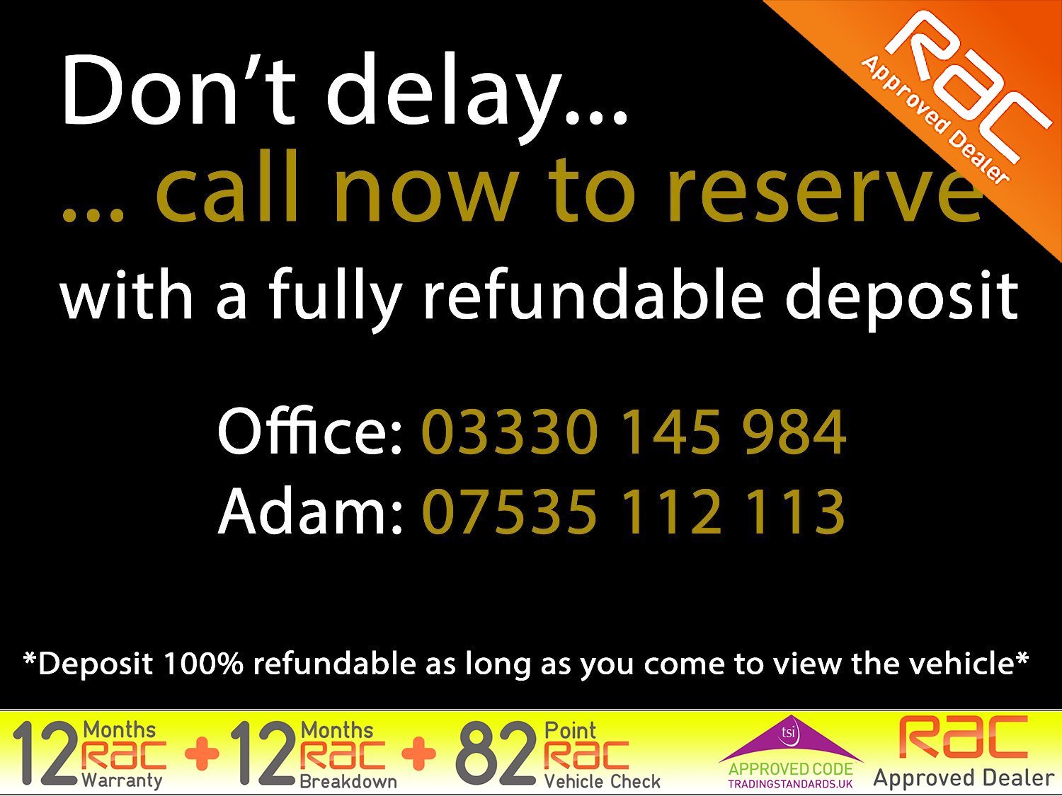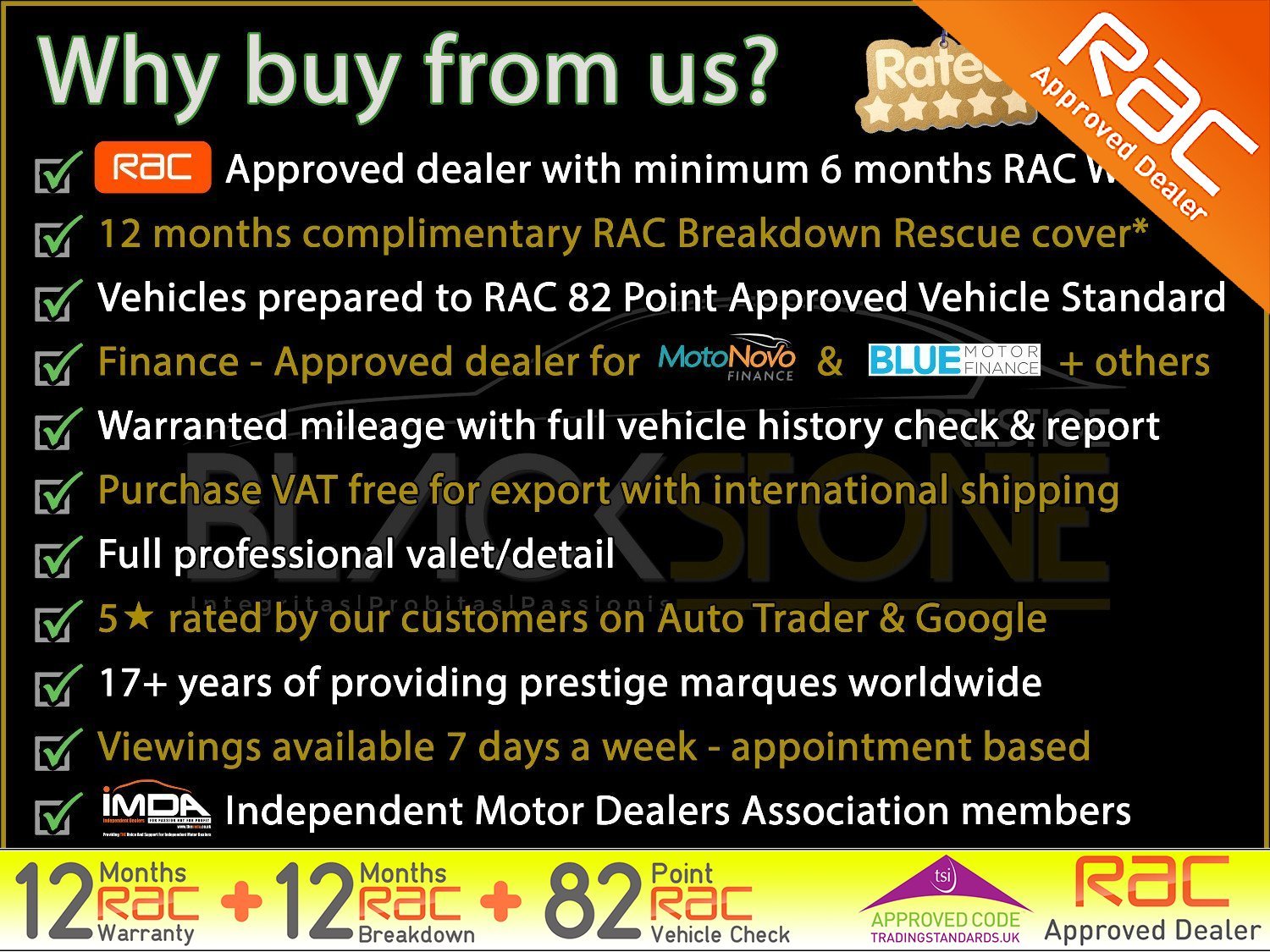 PURCHASE FROM AN RAC APPROVED DEALER WITH 6 MONTHS RAC WARRANTY & 12 MONTHS BREAKDOWN RESCUE with HOMESTART. BOOK PACK, HPI REPORT, SERVICE BOOK/PRINT & BOTH KEYS. Credit/Debit cards accepted. Low rate PCP/HP/ECP finance up to 84 months - apply directly on our website. Indoor showroom. Viewings by appointment. Call 03330 145984 or Adam on 07535 112113 to arrange a viewing. VISIT OUR WEBSITE FOR UP TO 100 IMAGES. Most cars VAT Qualifying. Purchase VAT free for export.