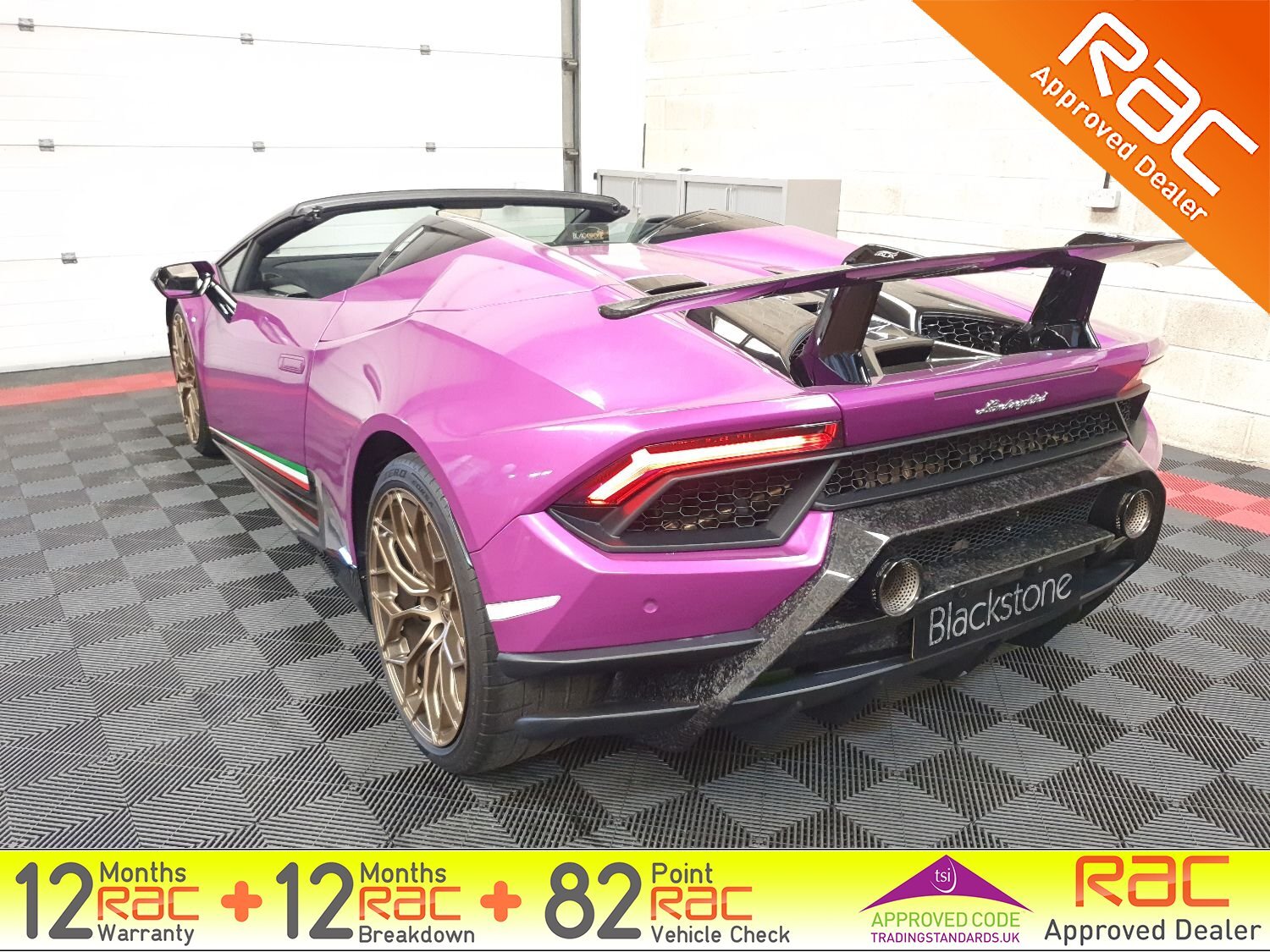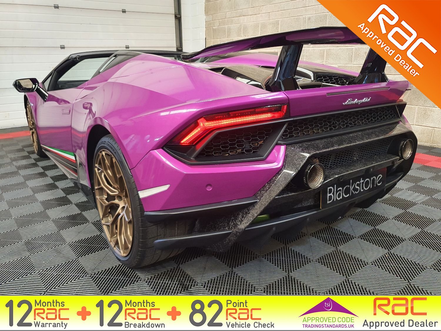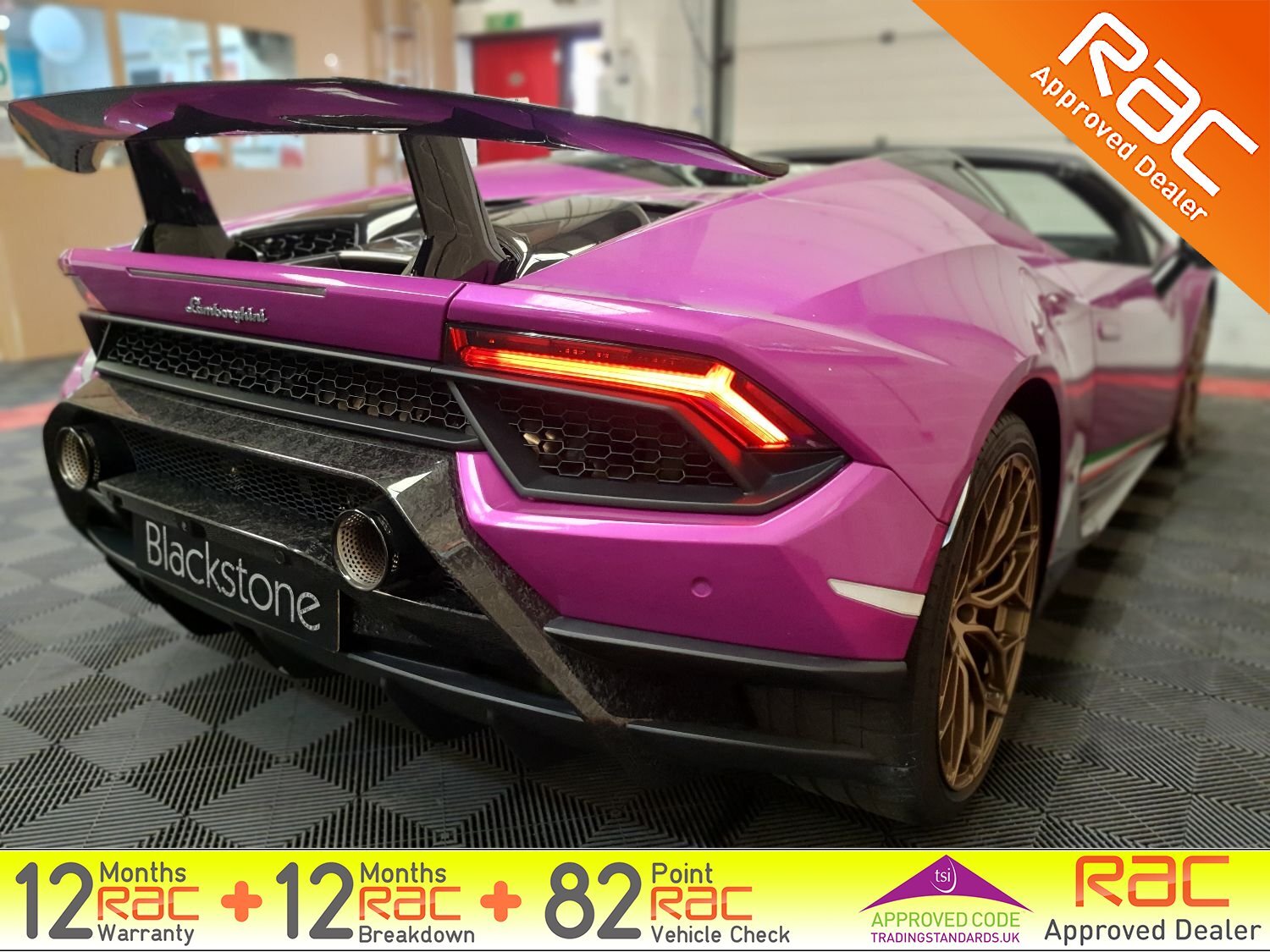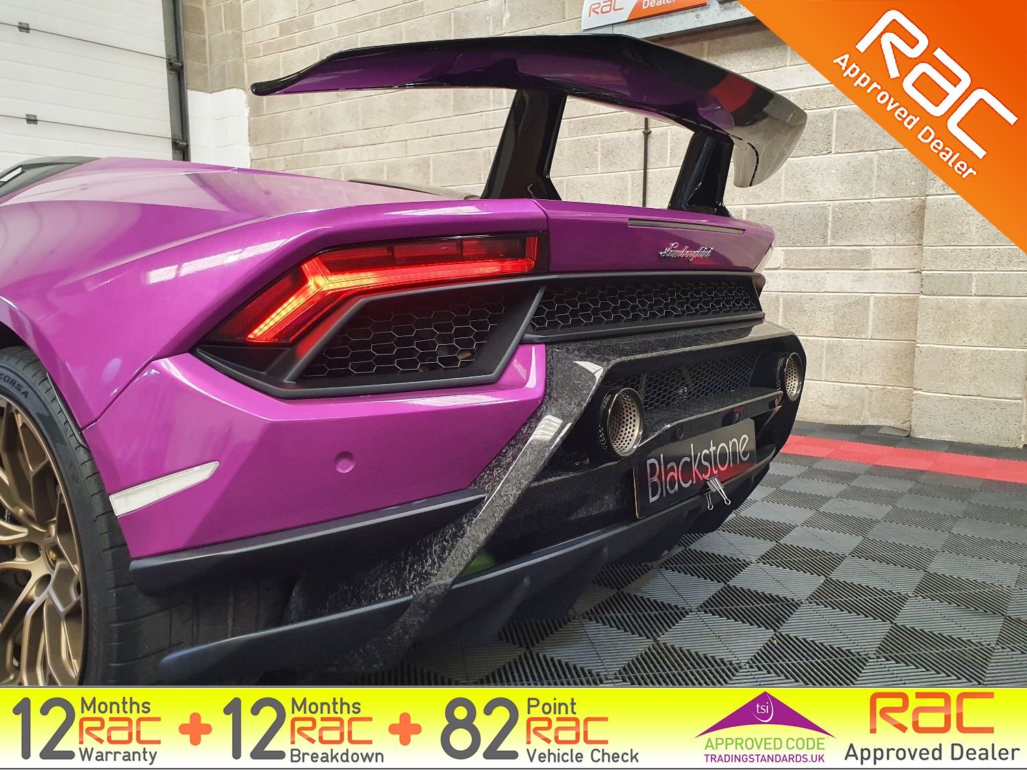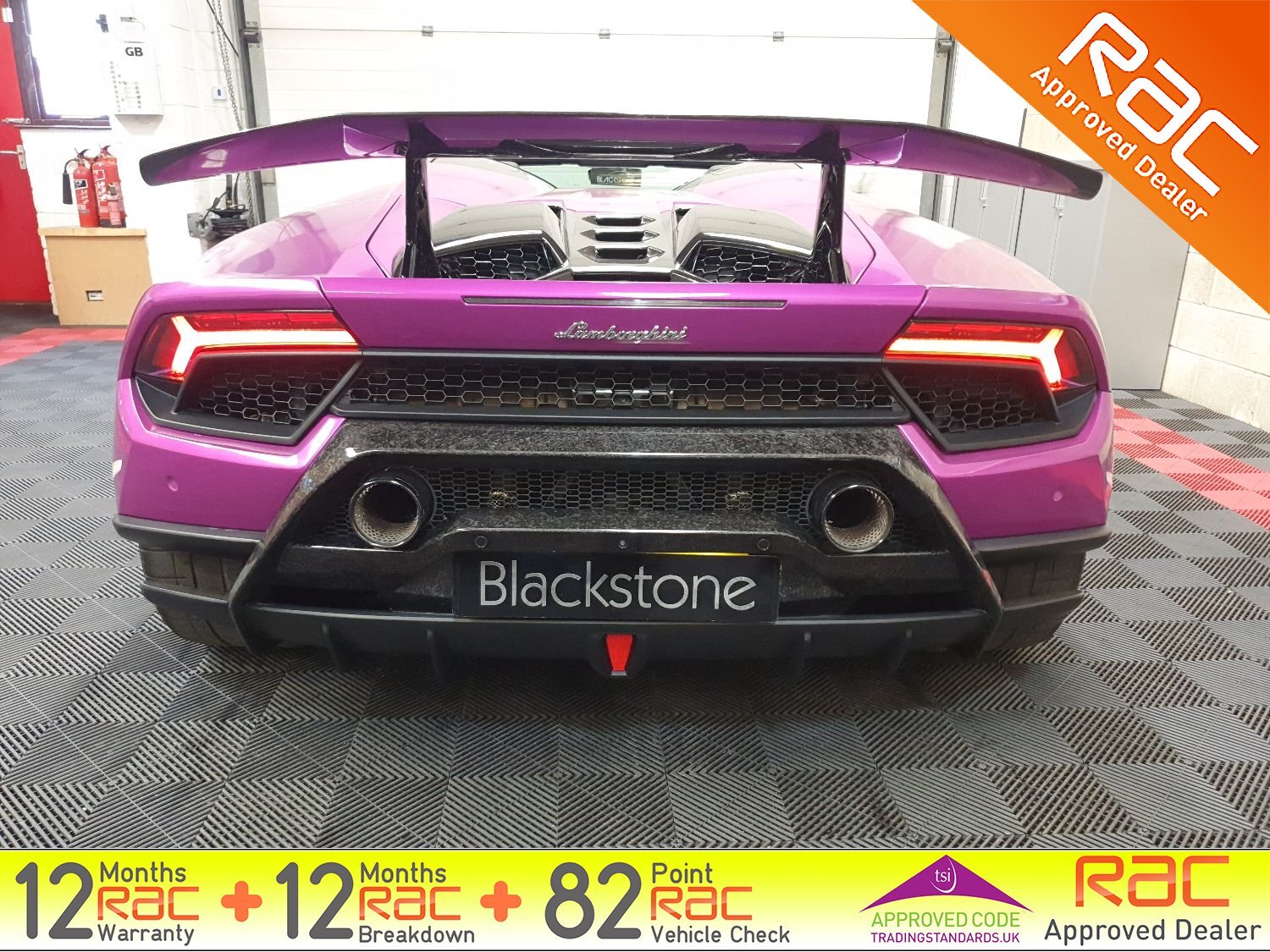 Blackstone Prestige are delighted to present this stunning Huracan Performante in a striking Magma Purple wrap. Comes with just 1 private owner from new and FULL Maborghini service history.