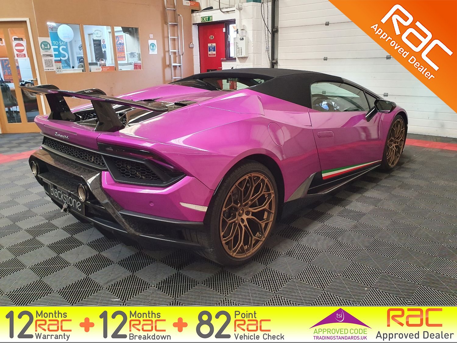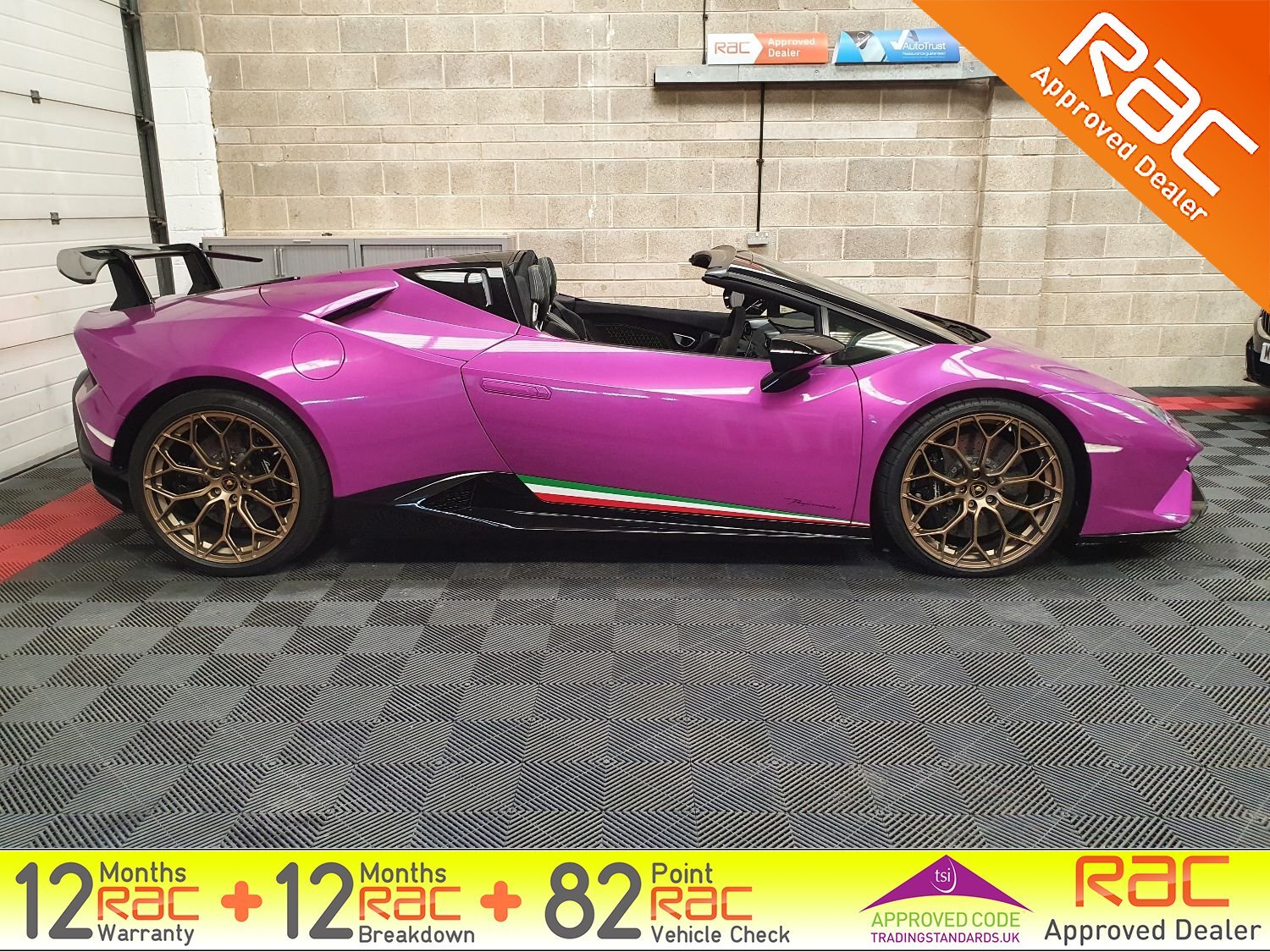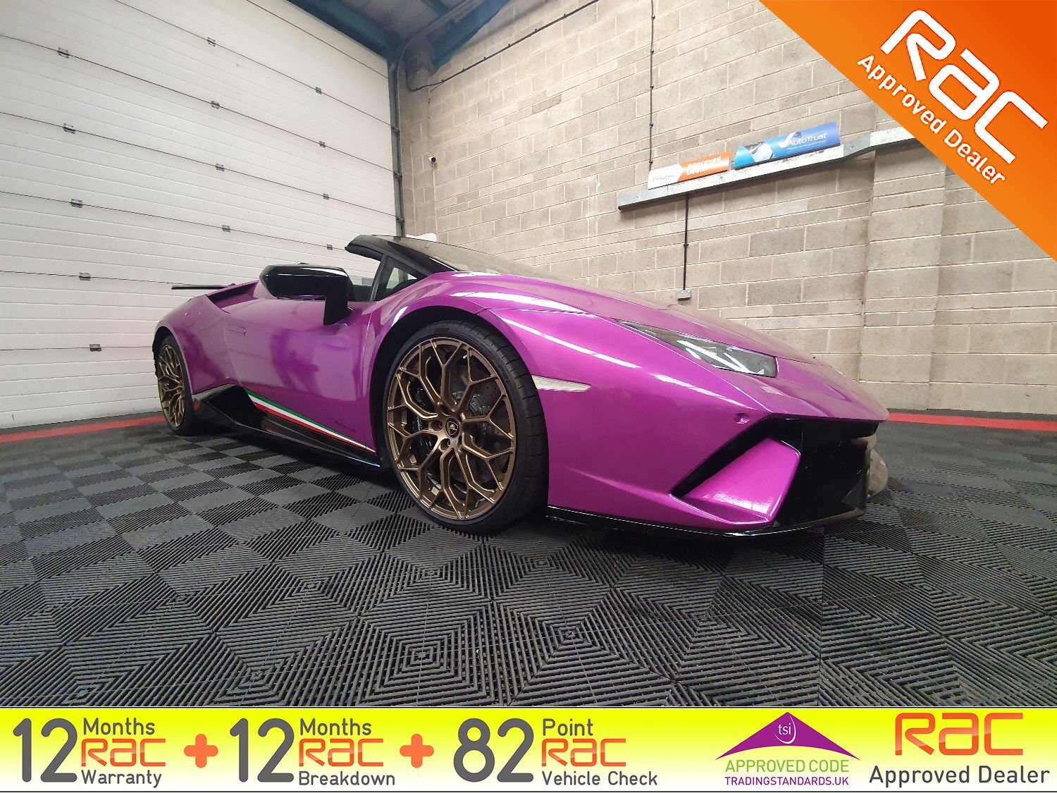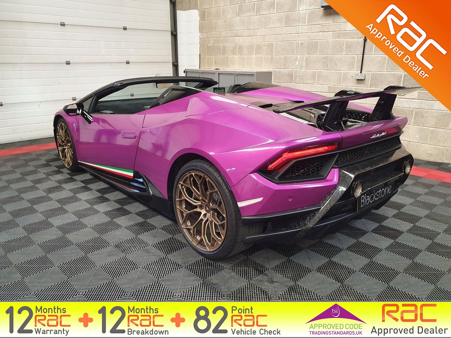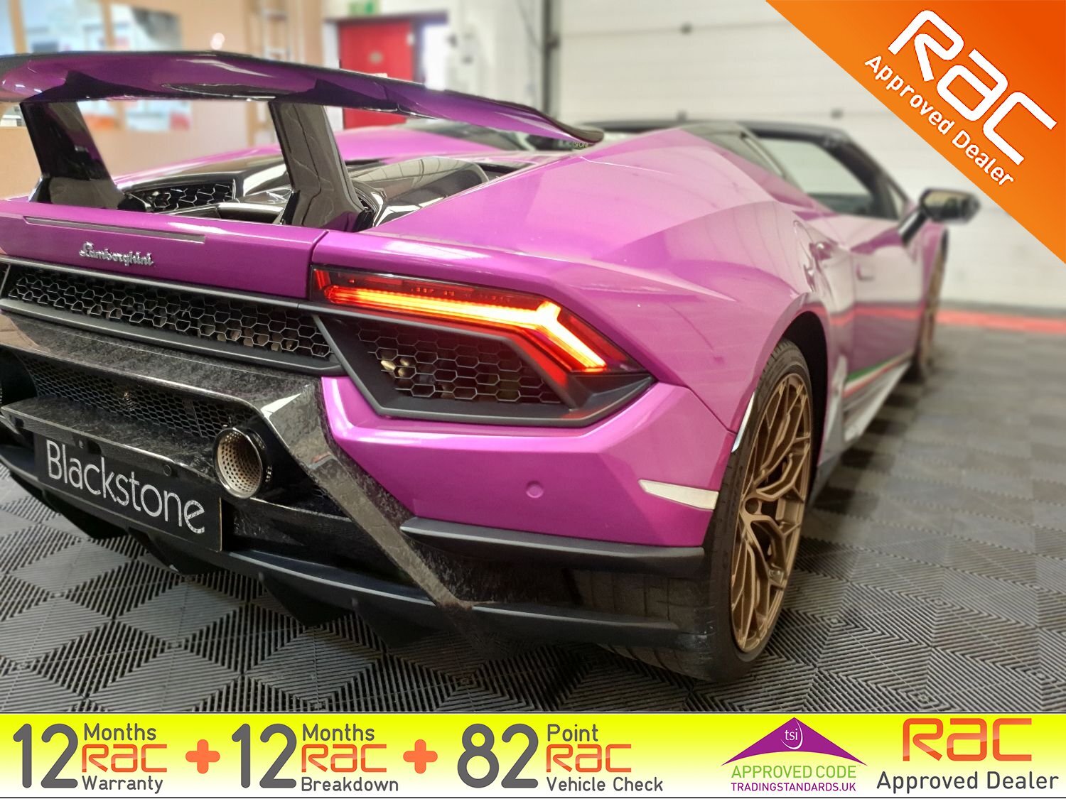 Blackstone Prestige are delighted to present this stunning Huracan Performante in a striking Magma Purple wrap. Comes with just 1 private owner from new and FULL Maborghini service history.