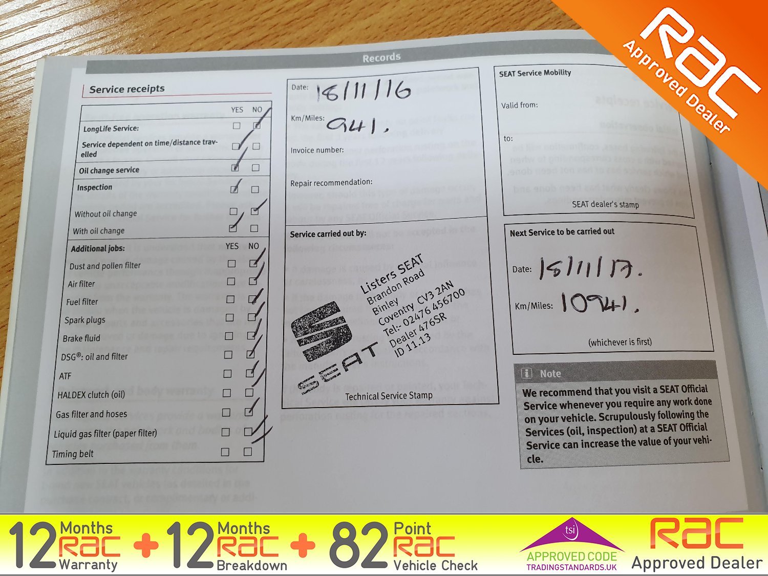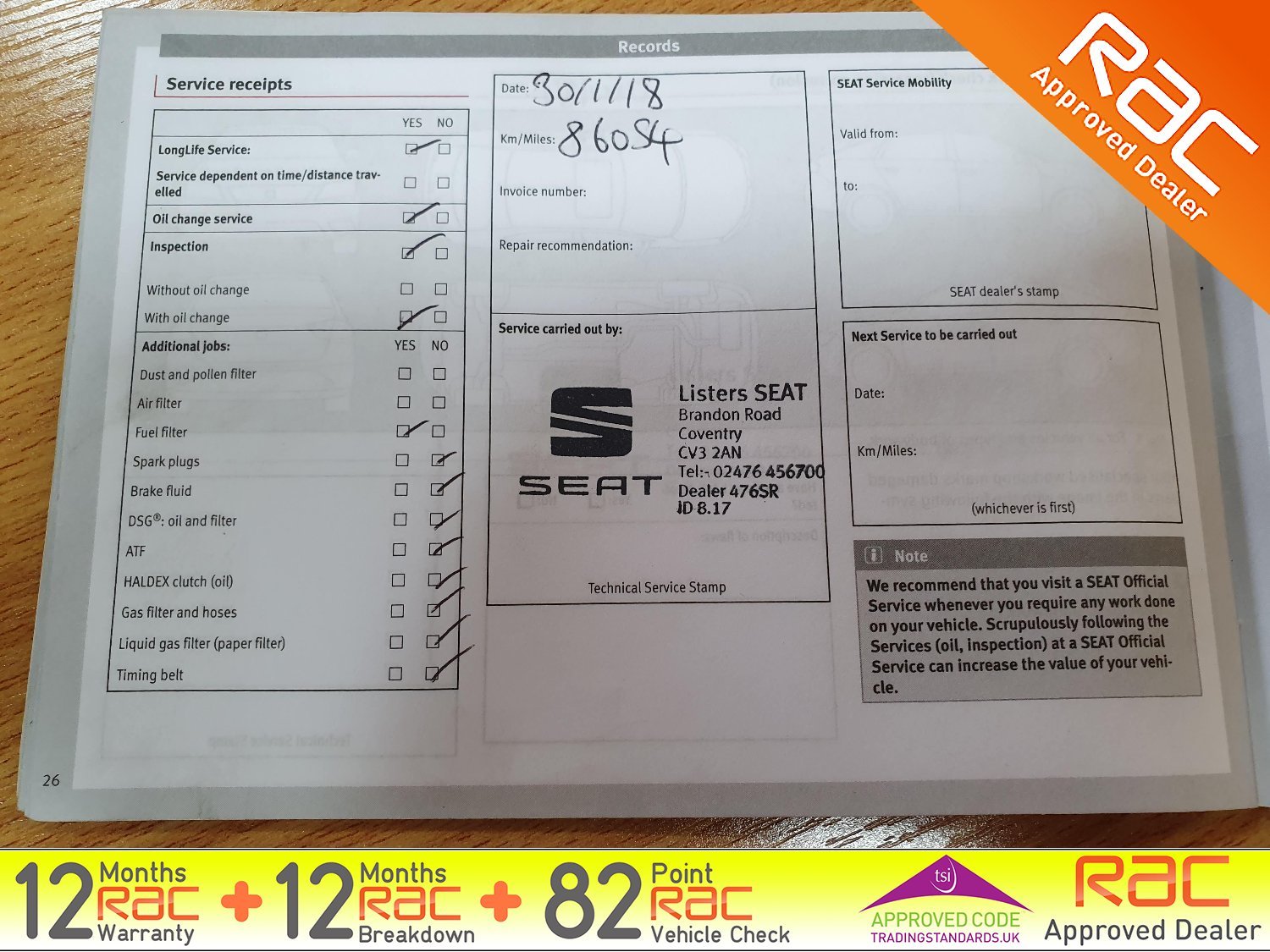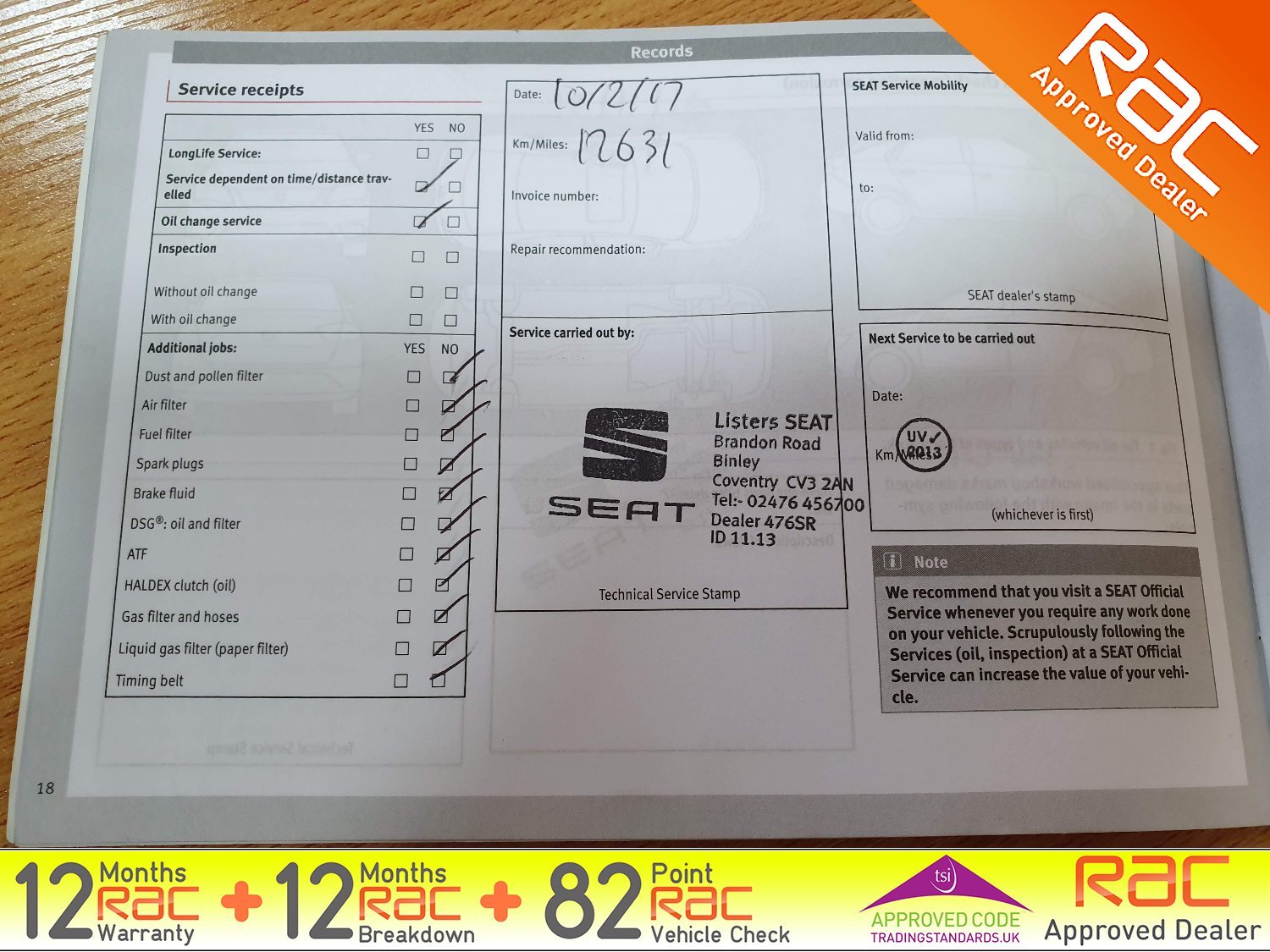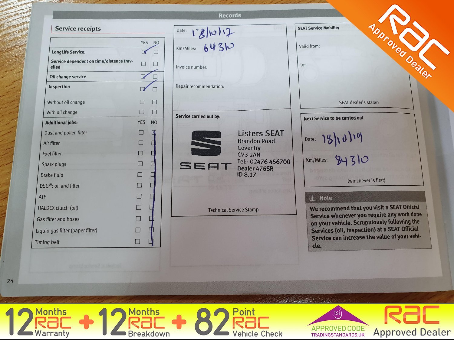 - Full SEAT Service history