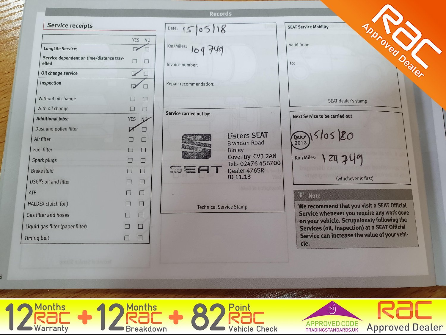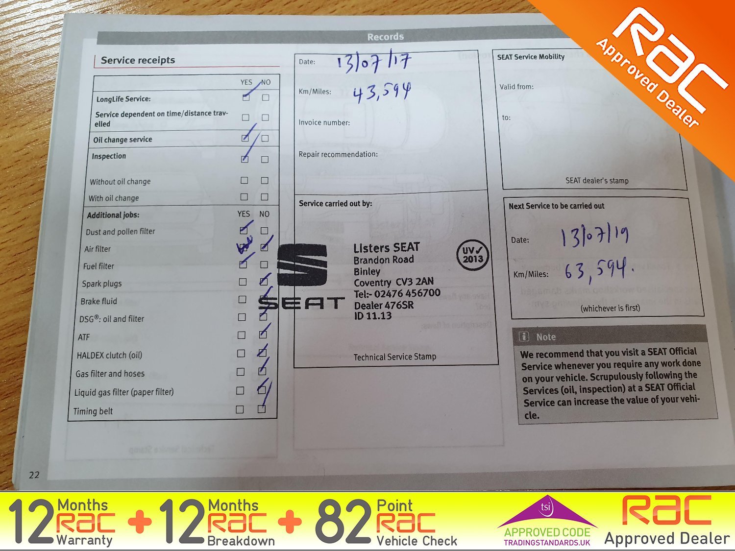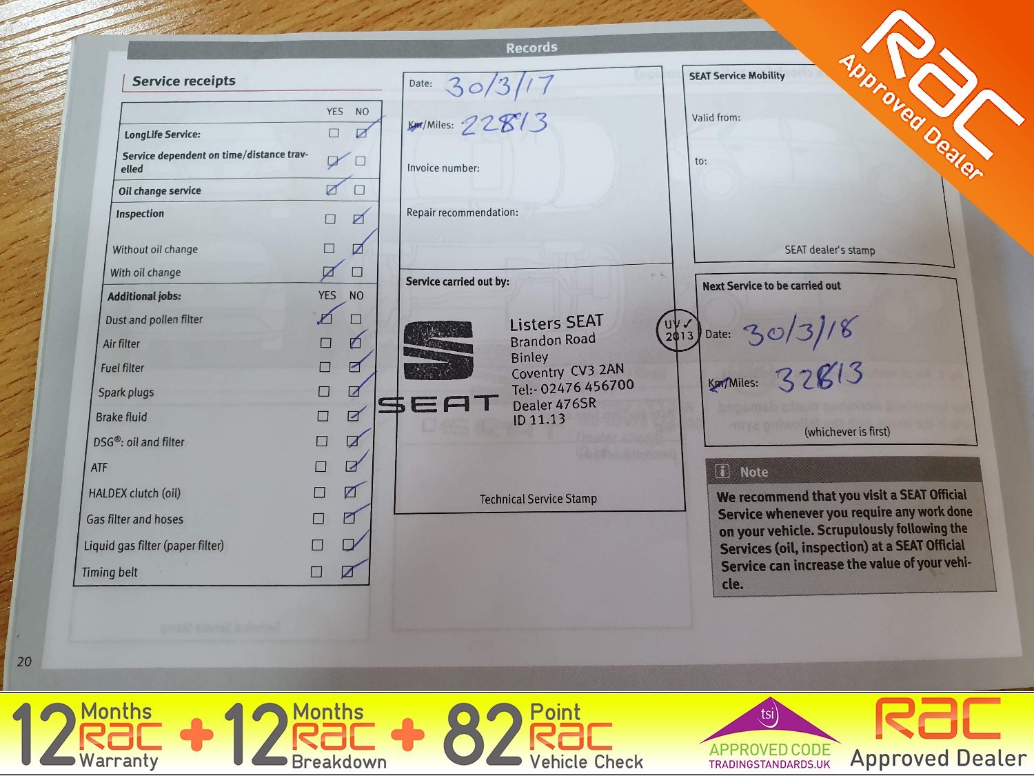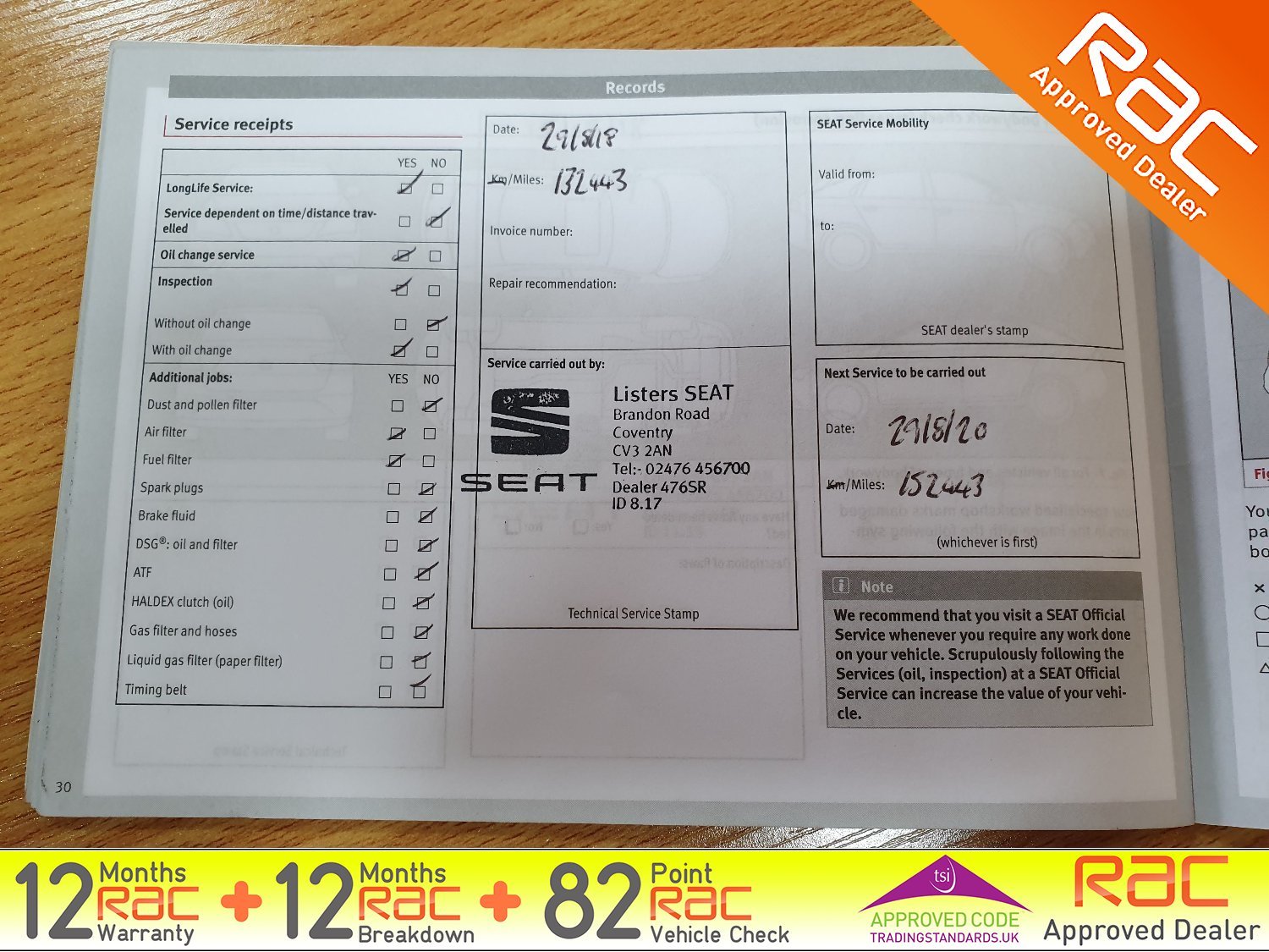 - Full SEAT Service history