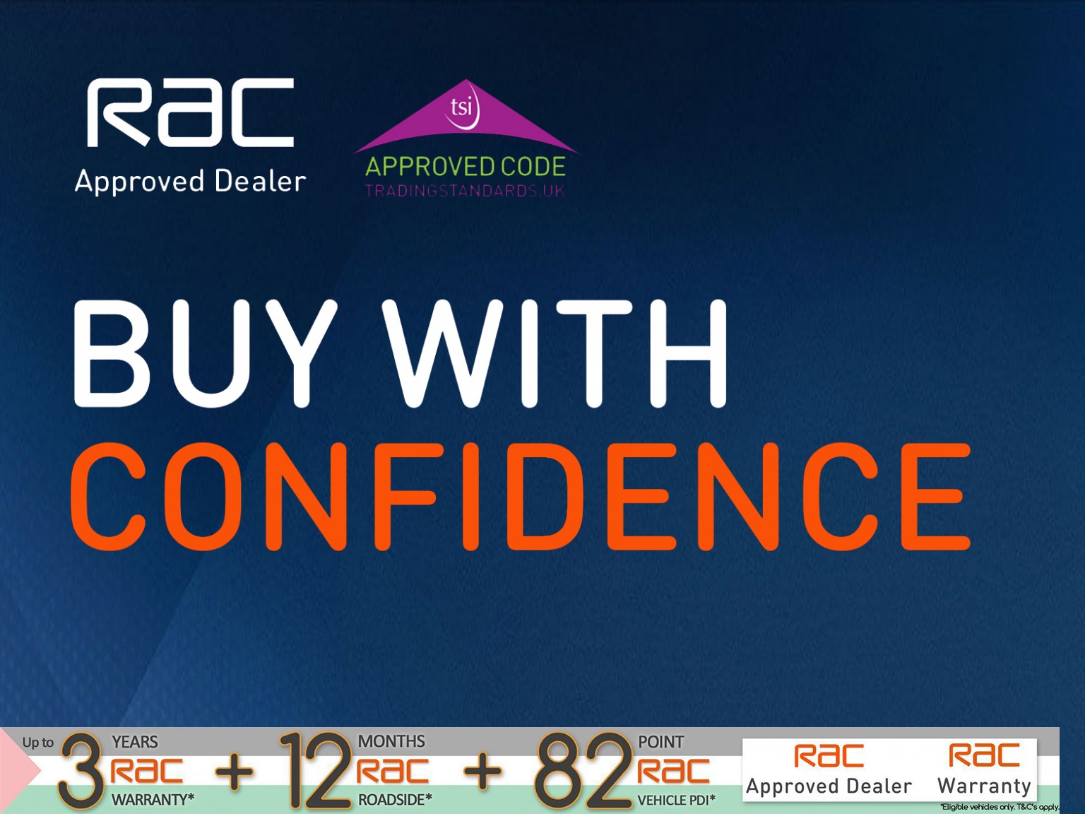 - BUY WITH MORE CONFIDENCE: RAC Inspectors regularly carry out un-announced checks on our vehicles to ensure they meet their stringent standards.