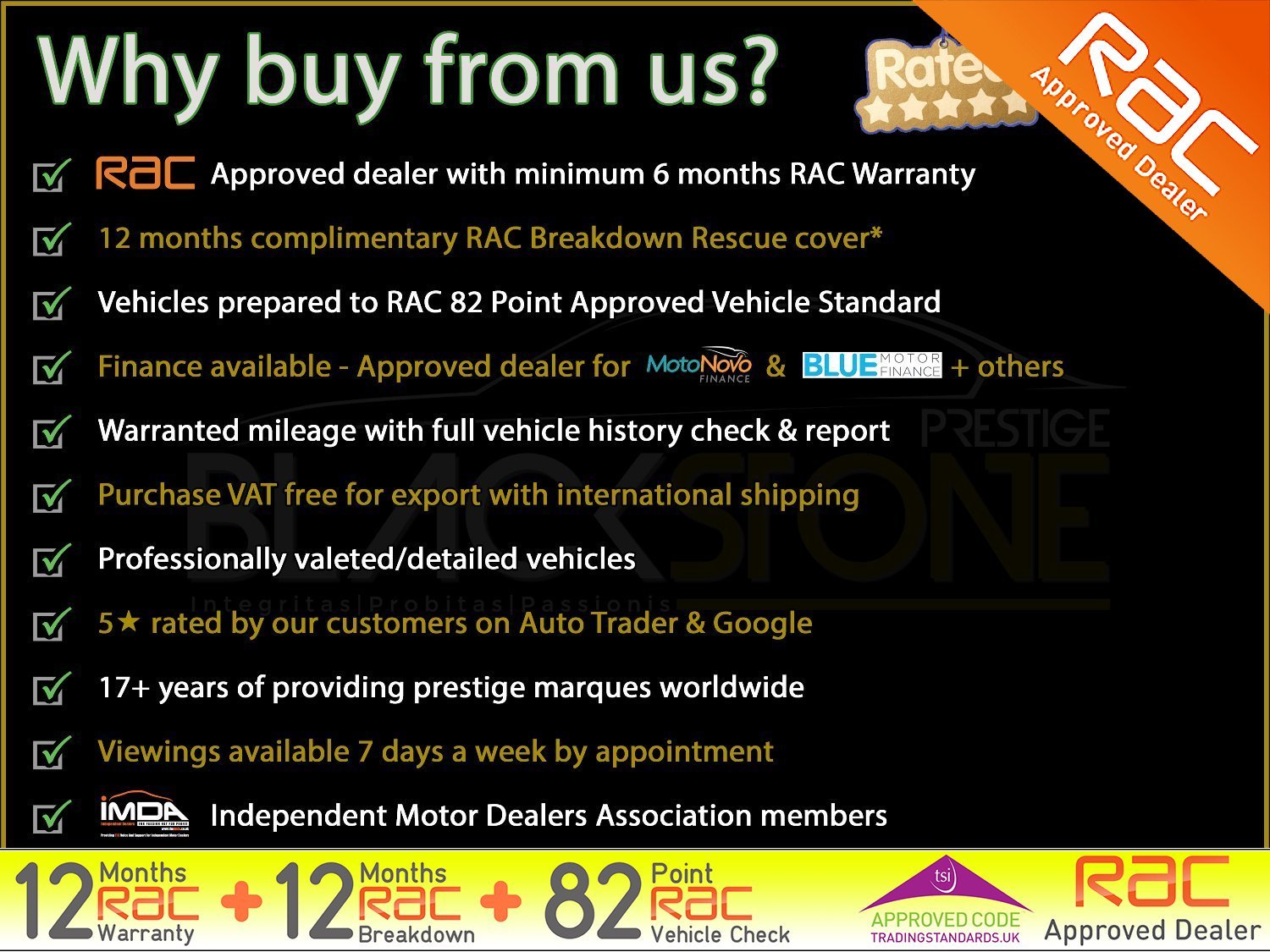 - PURCHASE FROM AN RAC APPROVED DEALER WITH 6 MONTHS RAC WARRANTY & 12 MONTHS BREAKDOWN RESCUE with HOMESTART. BOOK PACK, HPI REPORT, SERVICE BOOK/PRINT & BOTH KEYS. Credit/Debit cards accepted. Low rate PCP/HP/ECP finance up to 84 months - apply directly on our website. Indoor showroom. Viewings by appointment. Call 03330 145984 or Adam on 07535 112113 to arrange a viewing. VISIT OUR WEBSITE FOR UP TO 100 IMAGES. Most cars VAT Qualifying. Purchase VAT free for export.