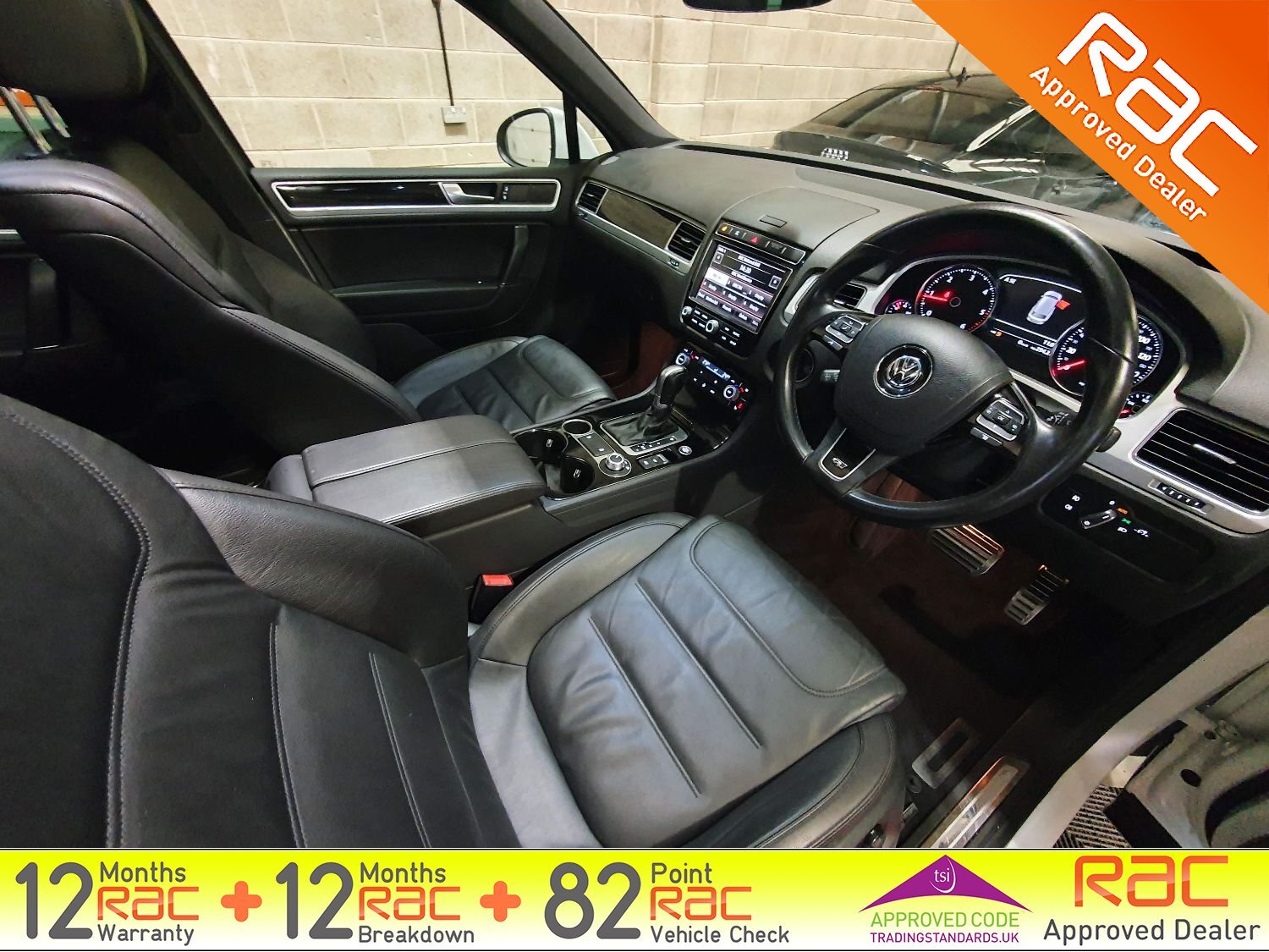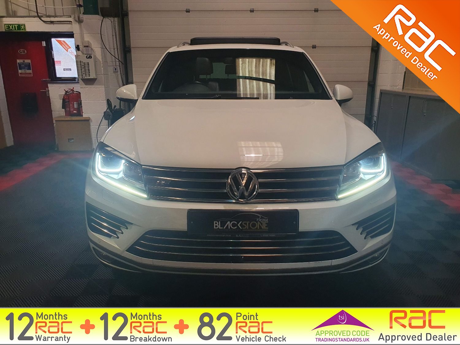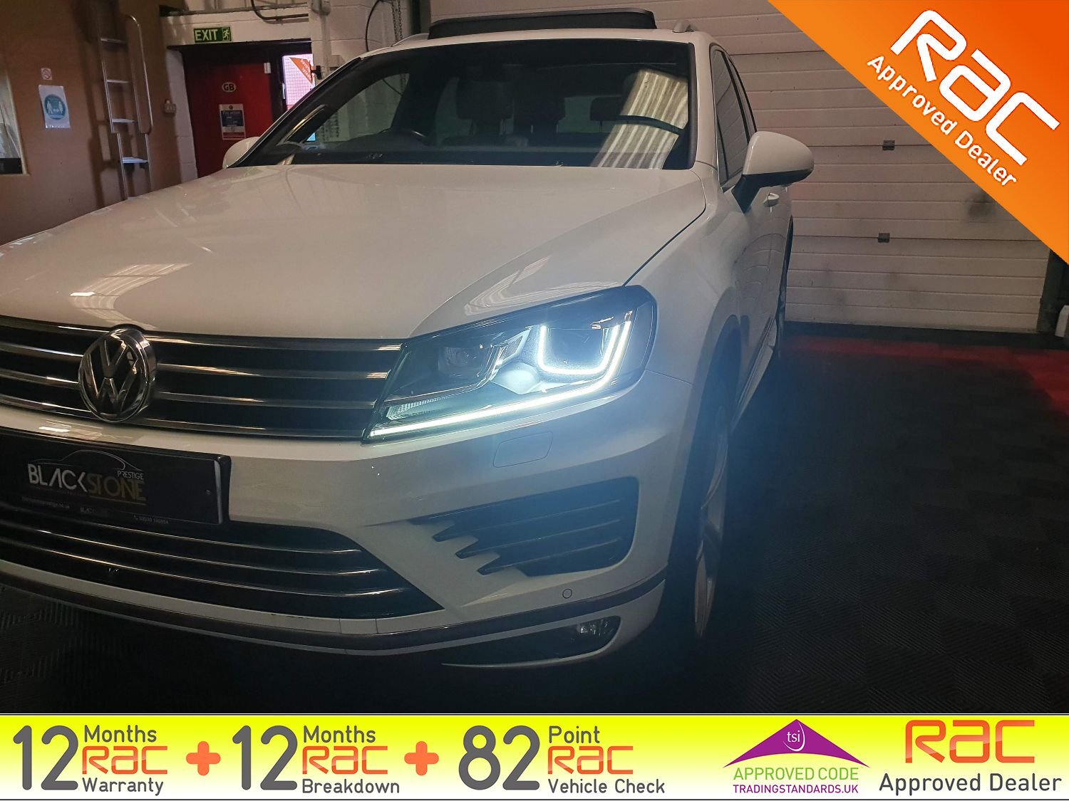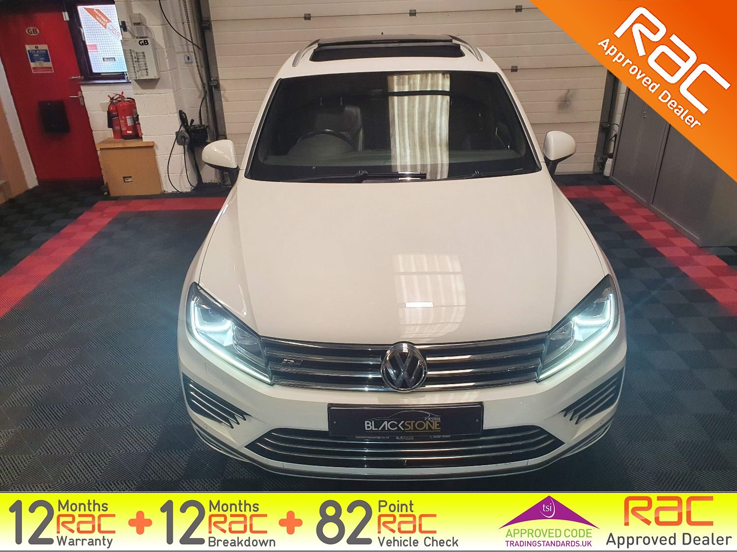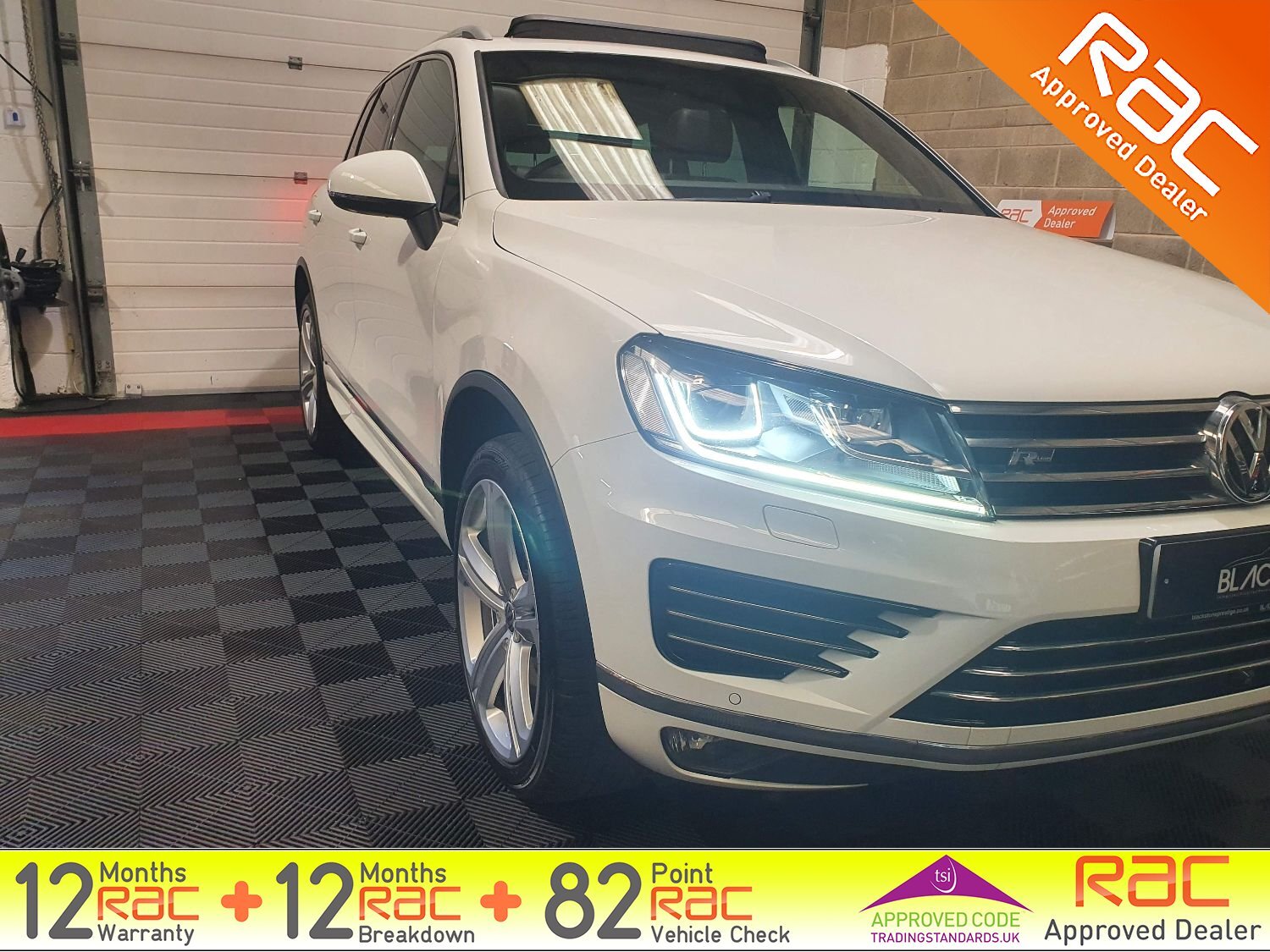 Lovely top-of-the range Touareg R-Line Plus with absolutely all the toys you could possibly want. Panoramic sunroof, 21" Wheels, Full heated leather, Heated steering wheel, Surround camera etc. Comes with Full VW service history and just 1 owner from new.